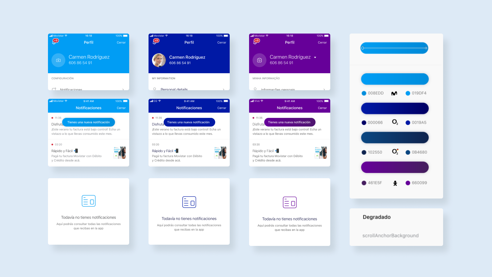The application is used by different brands, so any component or screen must be applied in different colors. The design system and any new component that is added to the design system must be studied and documented in order to be applied to other brands of the company in a correct and standardized way.